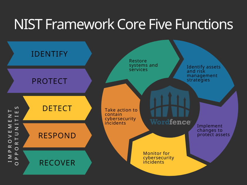 What no software can fully protect is the human element. This is where cybersecurity models and frameworks come in. Cybersecurity frameworks are a common tool used by organizations to protect their networks, systems, and digital assets. One well-known framework is the National Institute of Standards and Technology (NIST) Framework Core, which consists of Five Functions. While the NIST Framework Core is often associated with securing government networks, the same principles apply to WordPress websites as well.